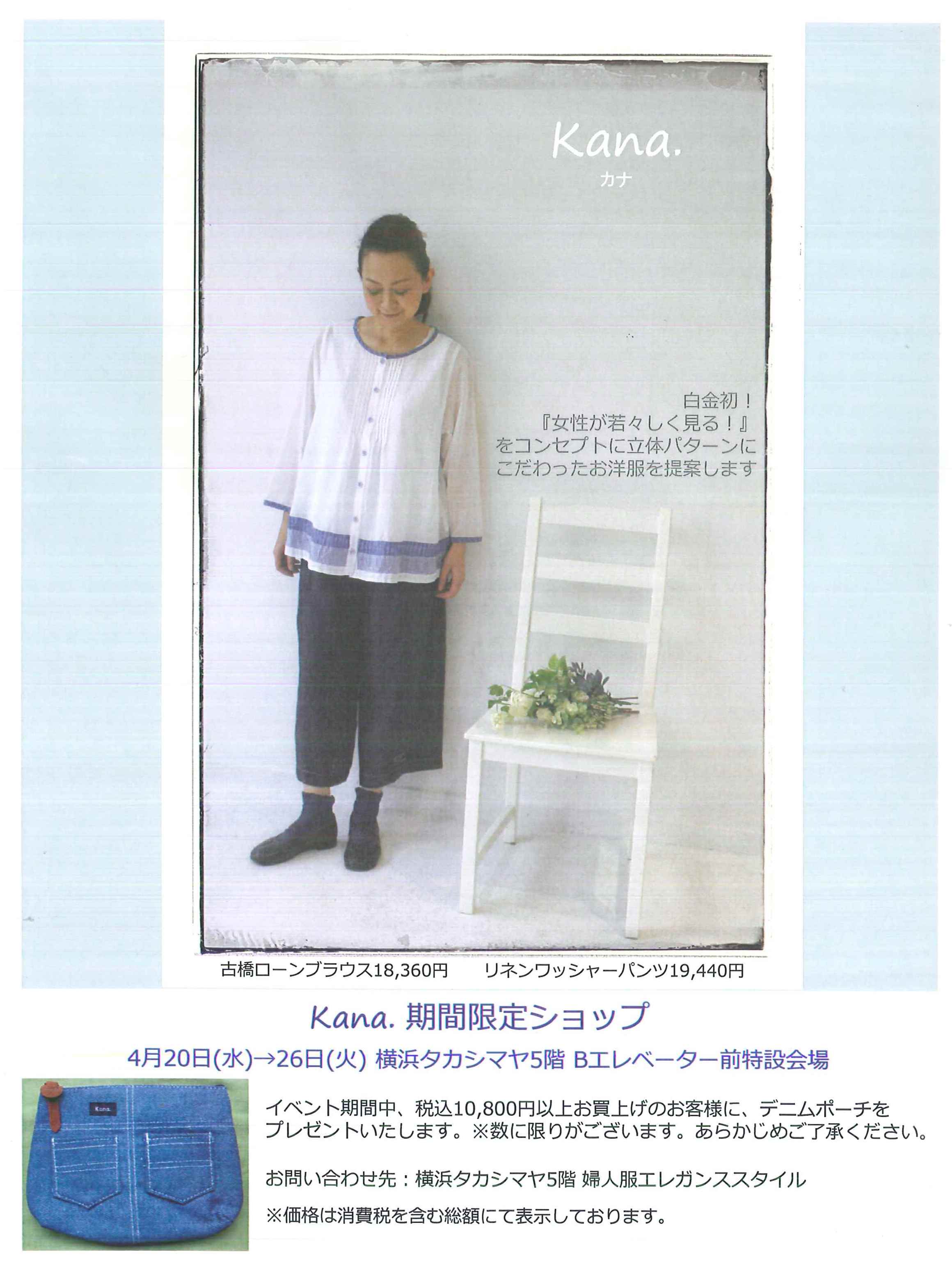 kana.夏物を取り揃えて 楽しい売り場を作ります!!! 初!横浜出店となりますが、 kana.スタッフは顔なじみのスタッフですので、 ぜひ、遊びにいらして下さいませ。