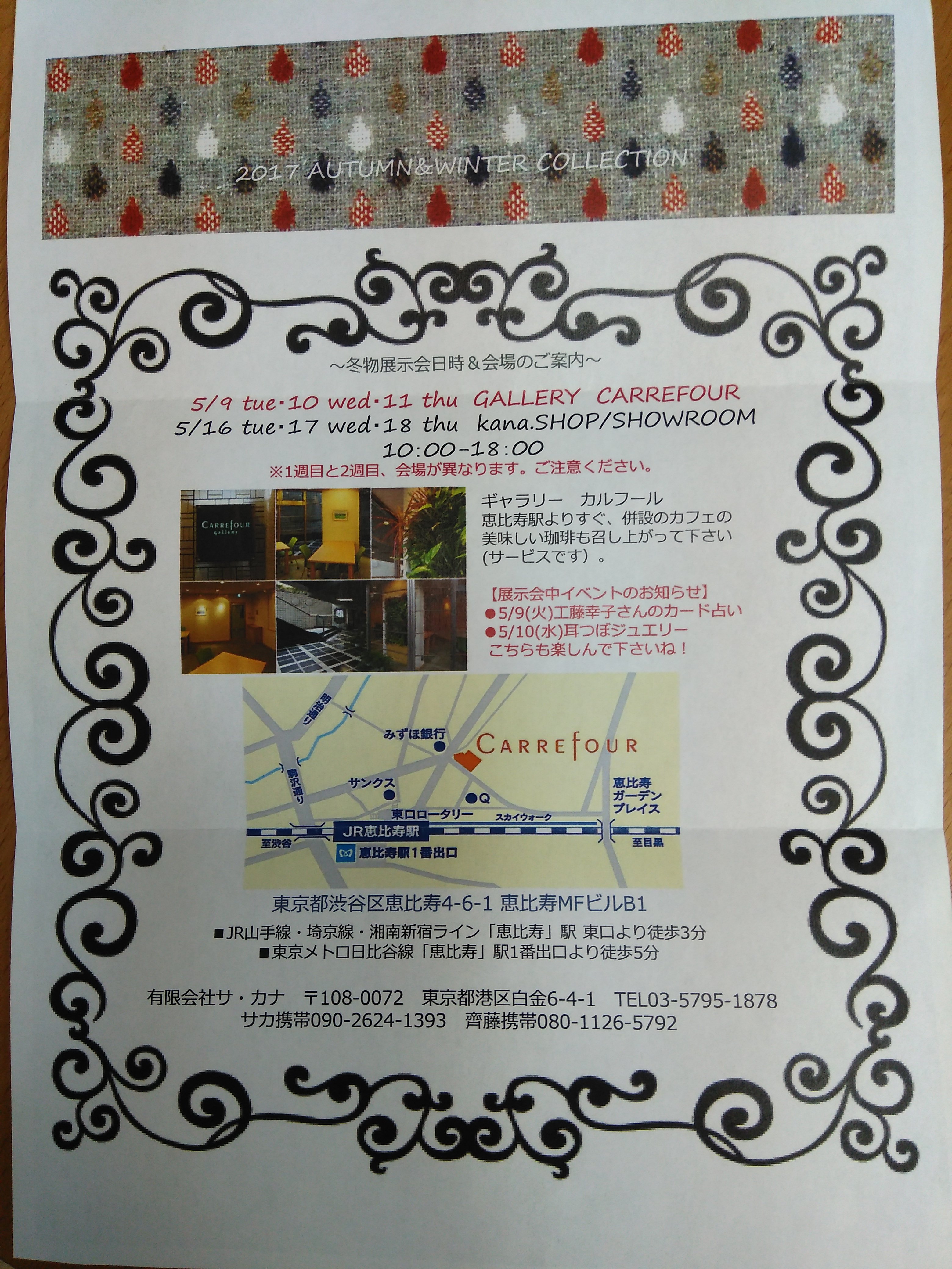 5月9日火曜日〜5月11日木曜日 10時〜17時恵比寿カルフールにて